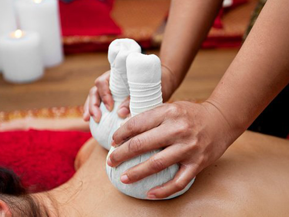 Wykonywany jest za pomocą specjalnych tajskich bawełnianych stempli, które stanowią mieszankę, wyselekcjonowanych ziół, przypraw i owoców o właściwościach leczniczych. Stemple podgrzewa się aby uwolnić zawarte w nich olejki eteryczne a następnie masuje się nimi ciało. Masaż stemplami dociera głęboko wewnątrz mięśni i stawów; działa przeciwbólowo, poprawia krążenie krwi i limfy. Szczególnie polecany osobom pracującym przy komputerze.